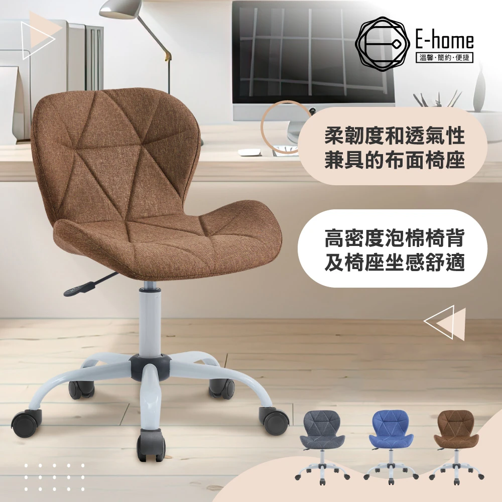 E-home Rory羅里菱格紋布面簡約白腳電腦椅 3色可選(OA辦公椅 會議椅 接待椅 美甲椅)