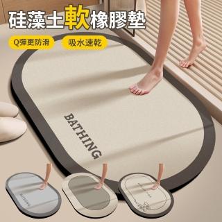 Shely 2入組 橡膠浴室防滑吸水地墊 硅藻土軟橡膠墊 衛生間地墊 廁所地墊 洗手間速乾腳墊 40*60cm