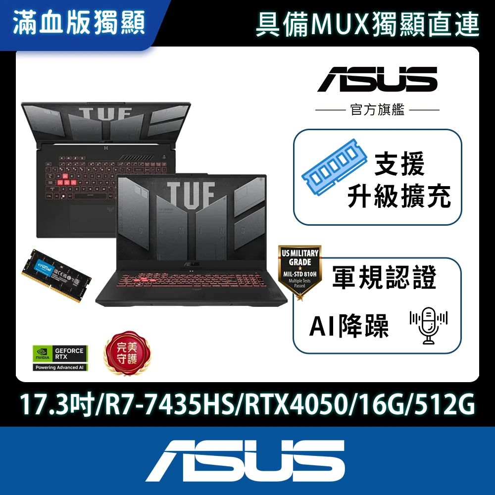 ASUS 華碩 升級32G組★17.3吋R7 RTX4050電競筆電(FA707NUR-0022B7435HS/R7-7435HS/16G/512G/W11)