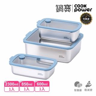 CookPower 鍋寶 匠造2代鮮盾pro可微波不鏽鋼保鮮盒3件組(上蓋可微波)