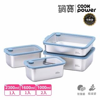 CookPower 鍋寶 匠造2代鮮盾pro可微波不鏽鋼保鮮盒大容量4件組(上蓋可微波)
