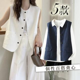 預購 ACheter 日系復古藍色馬甲休閒百搭牛仔背心短版外套#124332(5款任選)