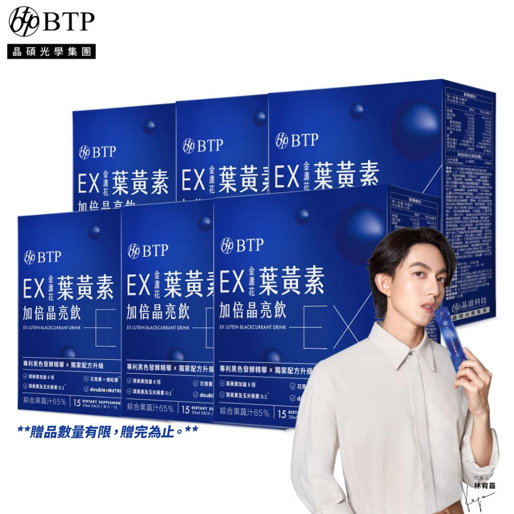 BTP EX葉黃素加倍晶亮飲 6盒(20ml*15入/盒/林宥嘉代言/ 維持晶亮/水潤舒適/一包搞定/游離型)