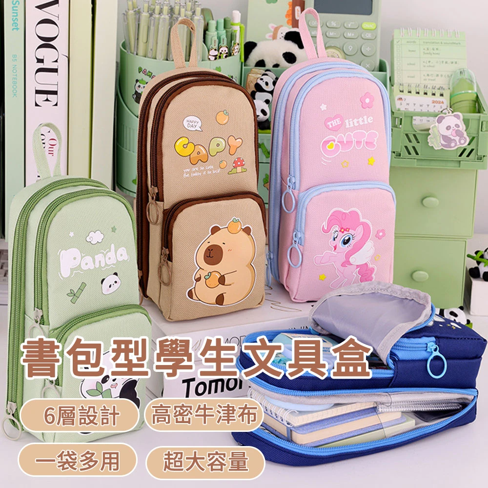 MUAN 書包型學生文具盒 6層多功能鉛筆袋 手提便攜筆袋 文具收納盒 收納包