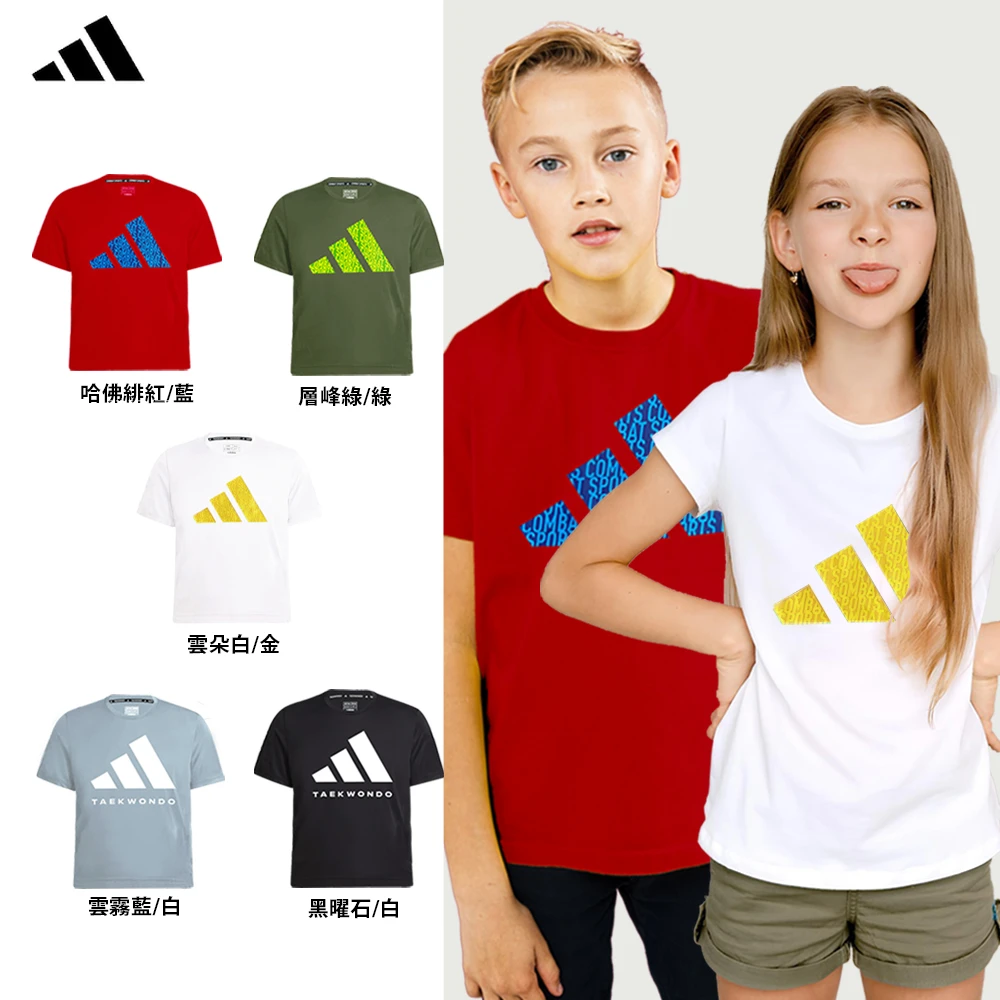 adidas 愛迪達 兒童吸濕排汗透氣短袖上衣-兩件組(短T 大童 男童 女童 彈性 透氣 快乾 經典)