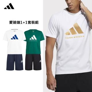 adidas 愛迪達 運動休閒短褲+萊卡空氣棉短袖(五分褲 短T 快乾 涼感 輕量 吸濕 透氣 彈性 男女同款)