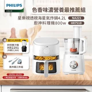 Philips 飛利浦 星樂視透視海星氣炸鍋4.2L+廚神料理機(NA221-白+HR7510)