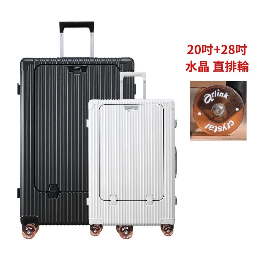 Arlink 水晶輪20吋+28吋 前開式行李箱 對開行李箱(行李箱組/20吋登機箱/杯架行李箱/28吋前開式行李箱)