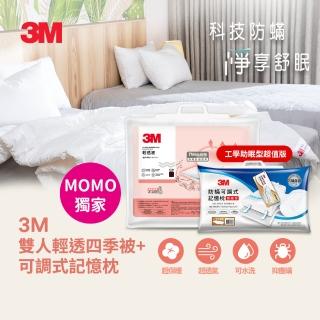3M 可水洗輕透被-標準雙人6X7+可調式記憶枕-工學助眠型超值版(四季被/棉被)