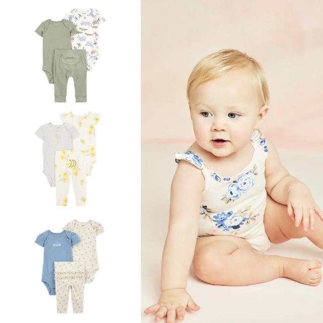 Carter’s官方授權 精選嬰兒短袖包屁衣3件組套裝〔包屁衣/長褲〕-多款任選(原廠公司貨 童裝 嬰兒裝)