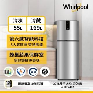 Whirlpool 惠而浦 58H快配Intelli Sense 224公升◆ 上下門一級能效雙門變頻冰箱(WTI2240A)