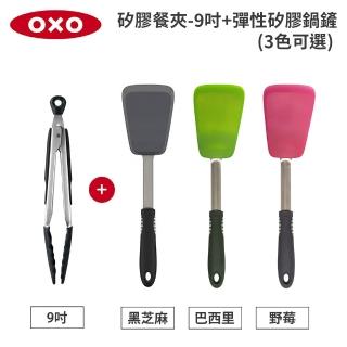 美國OXO 好好握不傷鍋矽膠2件組-9吋餐夾+矽膠鍋鏟(3色可選)