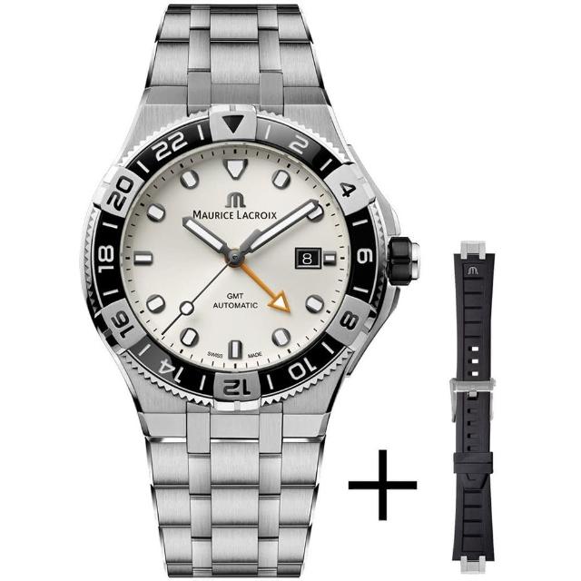 0【Maurice Lacroix 艾美錶】AIKON Venturer GMT 機械錶 套錶 附贈橡膠錶帶-43mm(AI6158-SS00F-130-A)