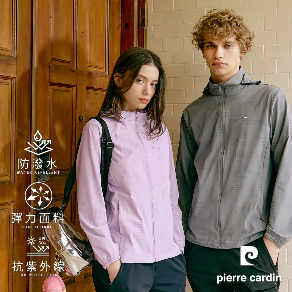 pierre cardin 皮爾卡登 網路獨家 男女款 冰絲涼感印花抗UV機能連帽外套(可拆帽/多色 任選)