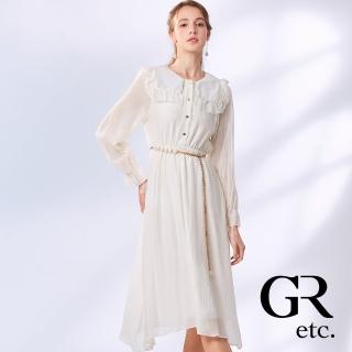 GLORY21 網路獨賣款-etc.優雅開襟方領荷葉邊長袖洋裝(白色)