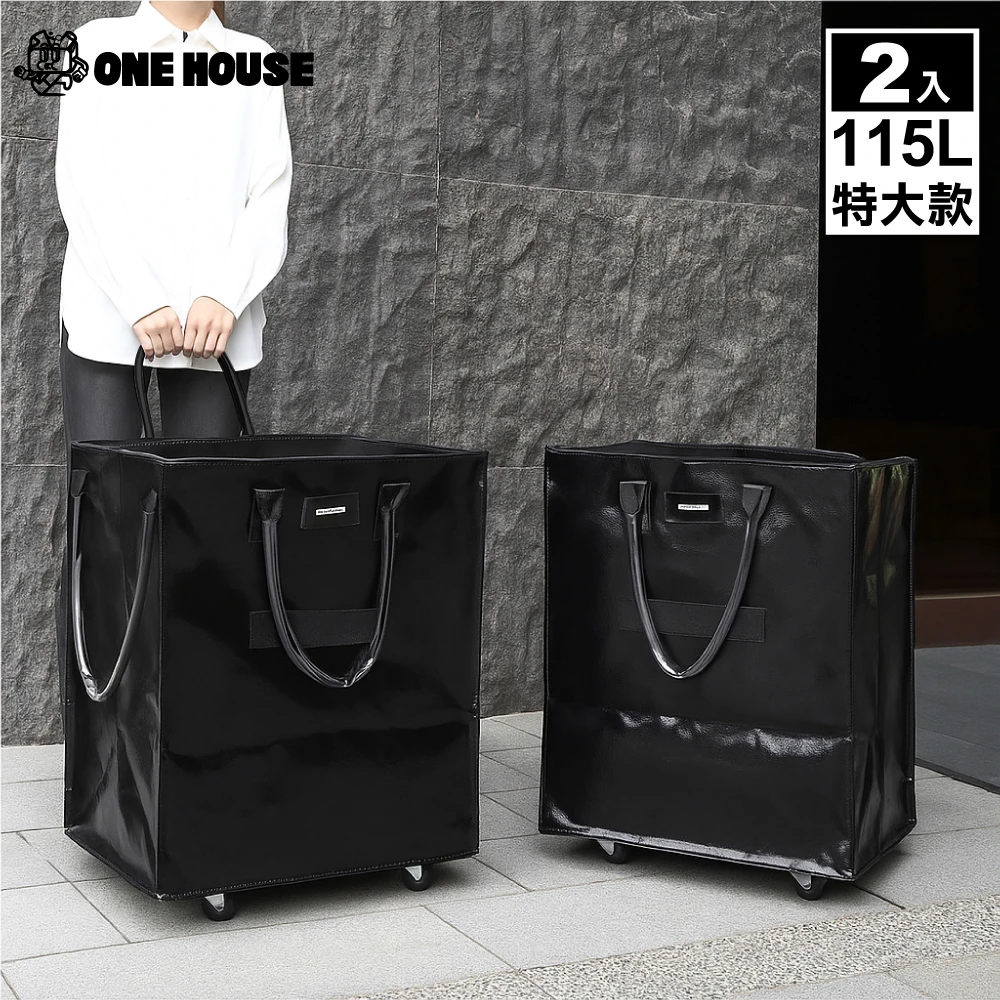 ONE HOUSE 115L 丹麥附輪超大容量手提防水折疊購物車_特大款 2入(收納包 旅行袋 買菜車 摺疊購物車)