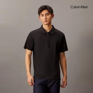 CALVIN KLEIN 官方旗艦館 CK Smooth Cotton UV Protect Half Zip Polo衫_黑色