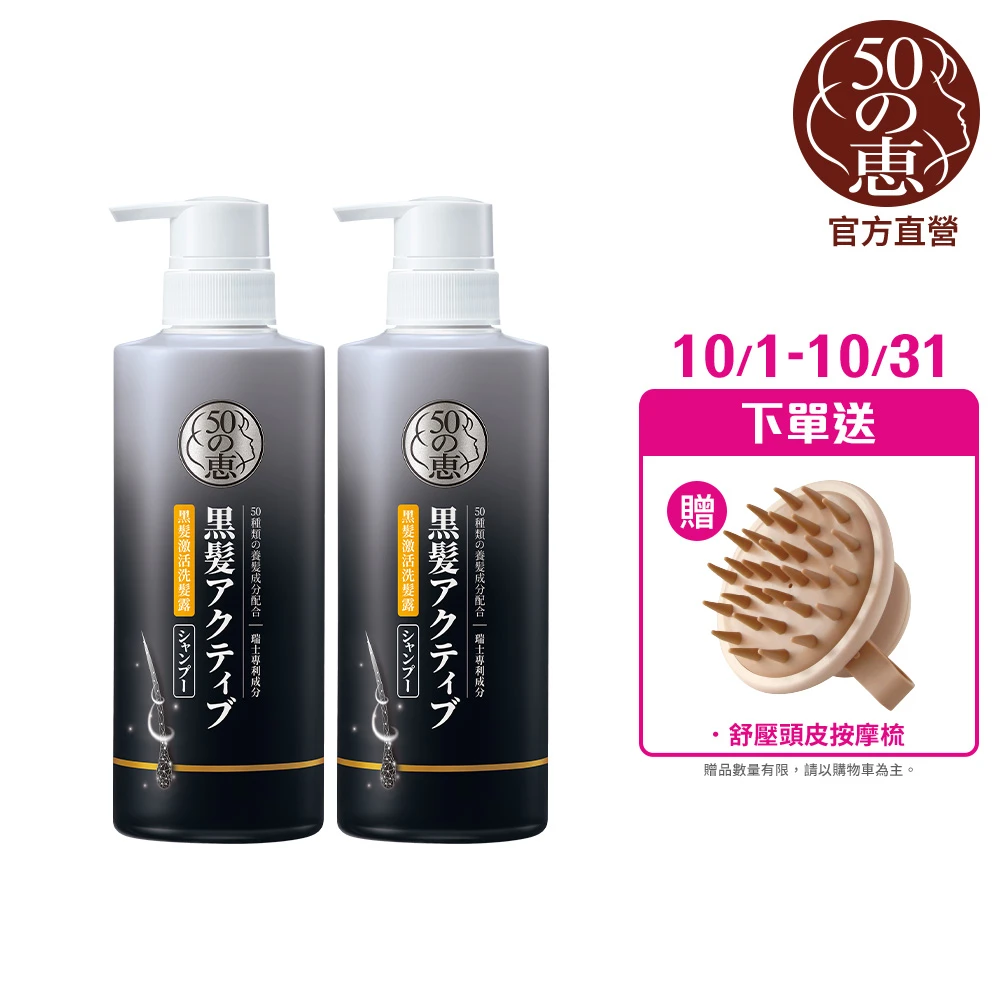 50 惠 黑髮激活洗髮露 400mL 2入(日本樂敦製藥 無添加矽靈 促進頭皮循環 活絡滋養髮根)