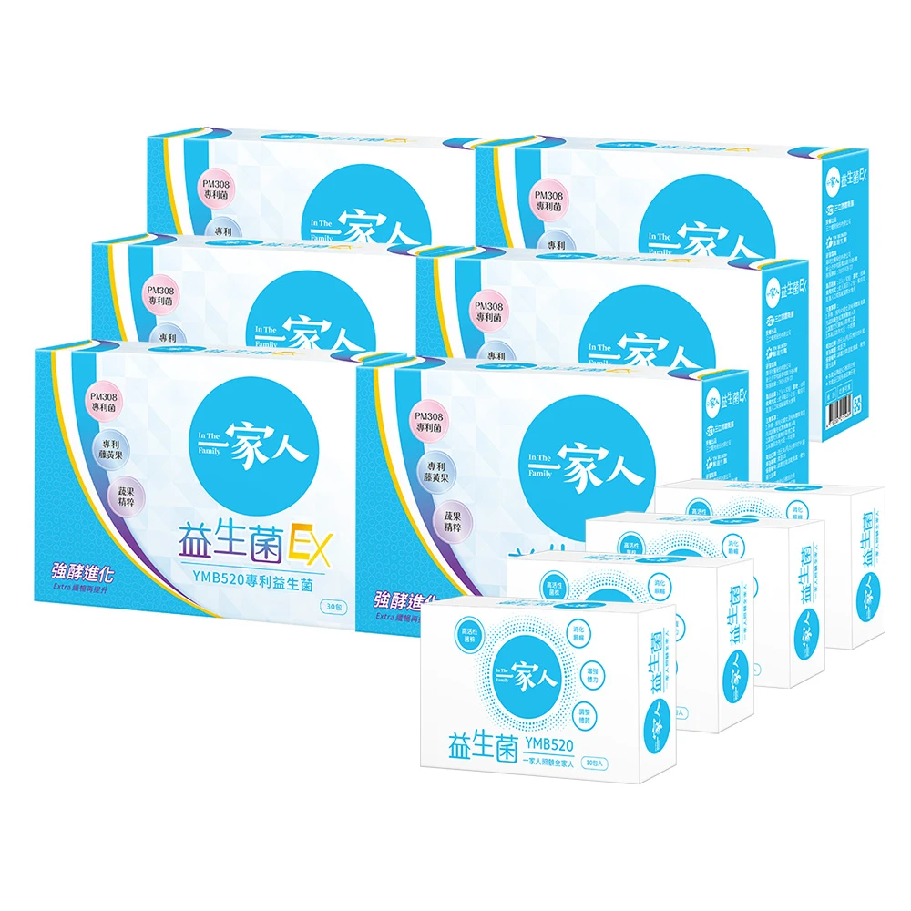 YM BIOMED 陽明生醫 一家人益生菌EX版6盒組贈原版益生菌40包(代謝進化 專利菌 藤黃果 蔬果精萃 纖暢)