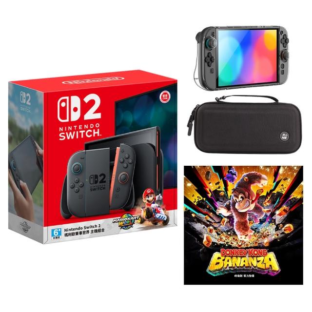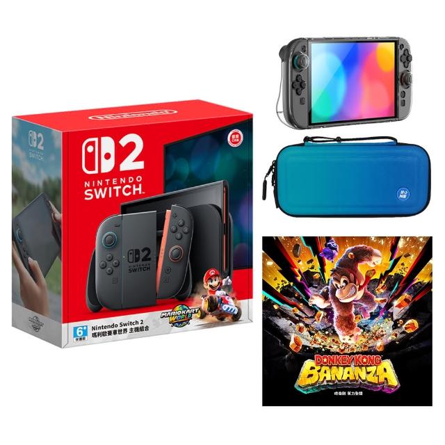 Nintendo 任天堂 Switch 2 瑪利歐賽車世界 主機組+《蕉力全開》+《良值 NS2殼+包》+《9H鋼化貼》