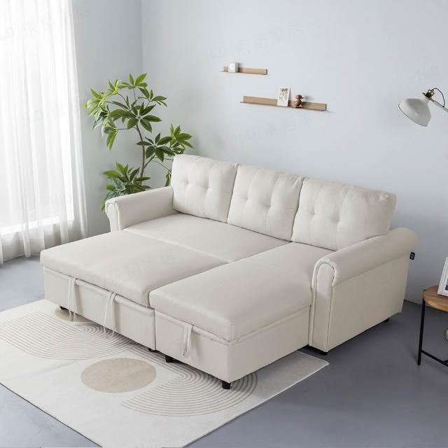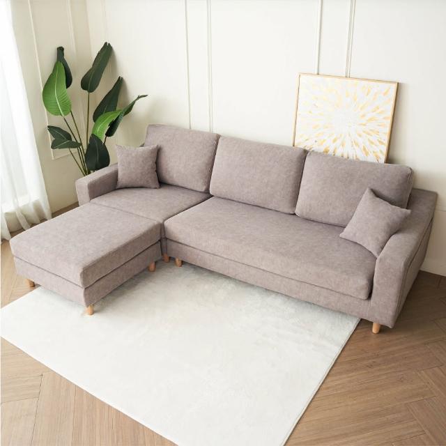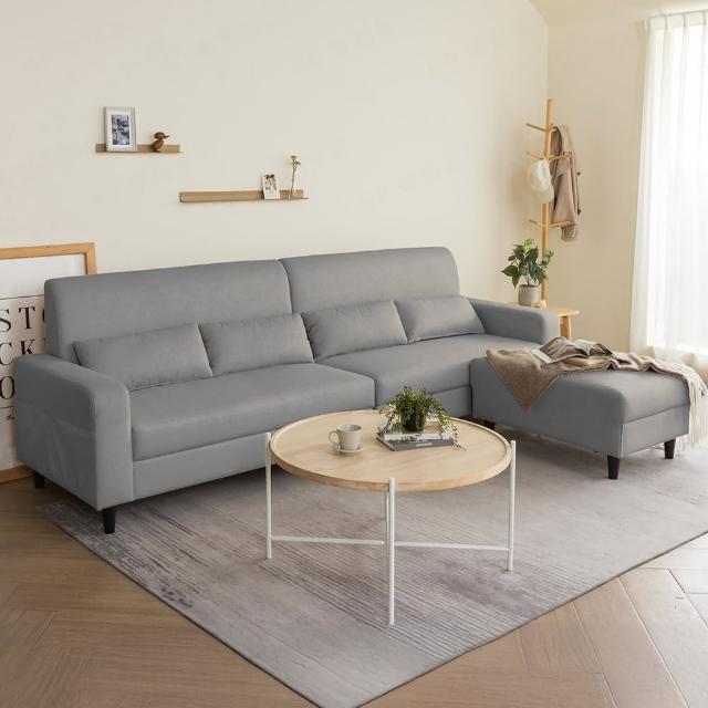H&D 東稻家居 碧伊耐磨貓抓布大L型四人活動沙發 MOMO獨家(附4顆可拆洗腰枕)