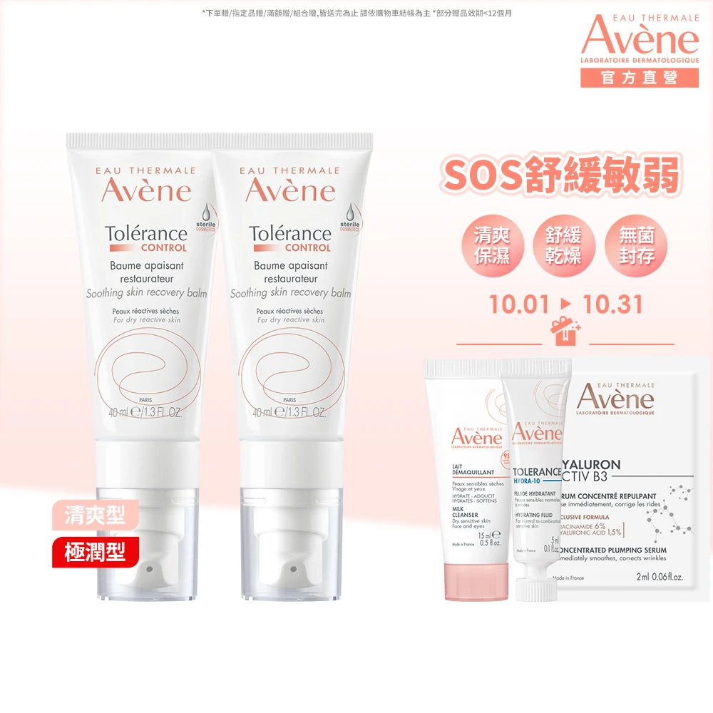 Avene 雅漾官方直營 SOS舒敏保濕精華乳2入組(極潤/清爽任選)