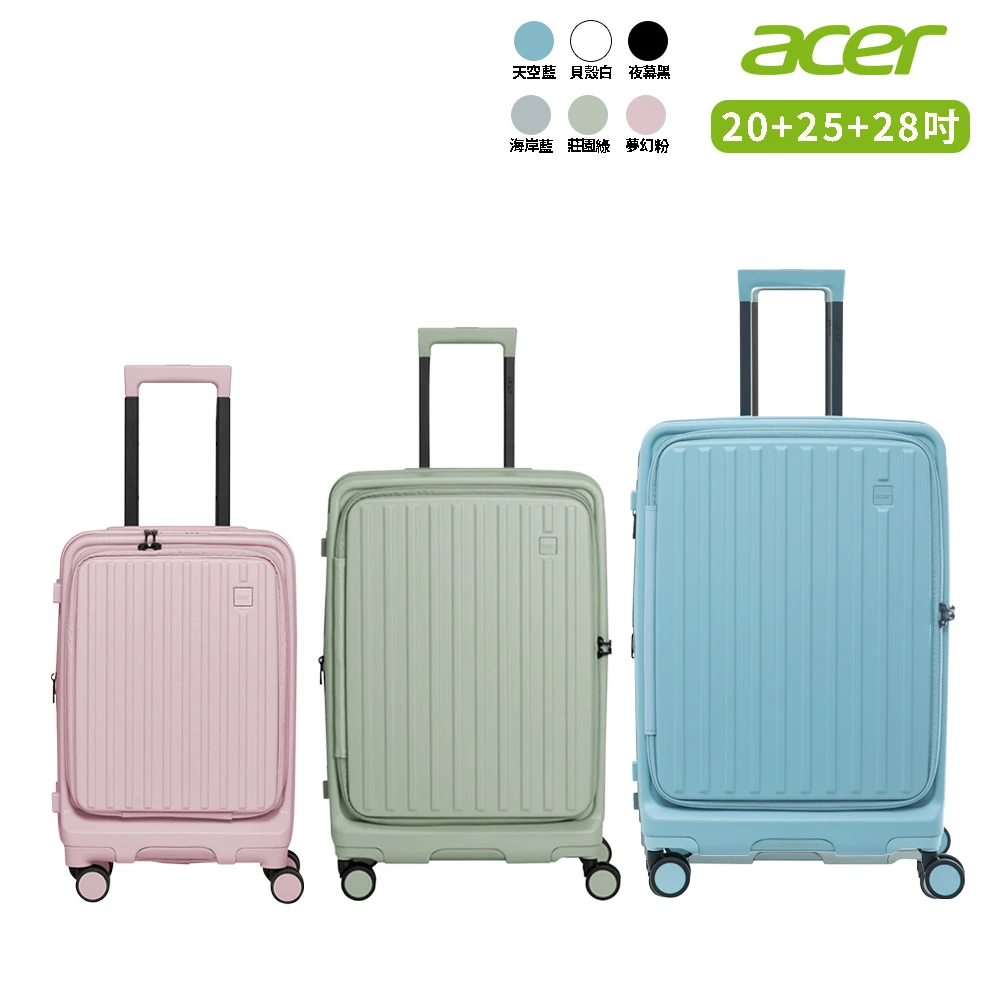 Acer Fashion 3件組★20+25+28吋 巴塞隆納前開式行李箱(多色任選)