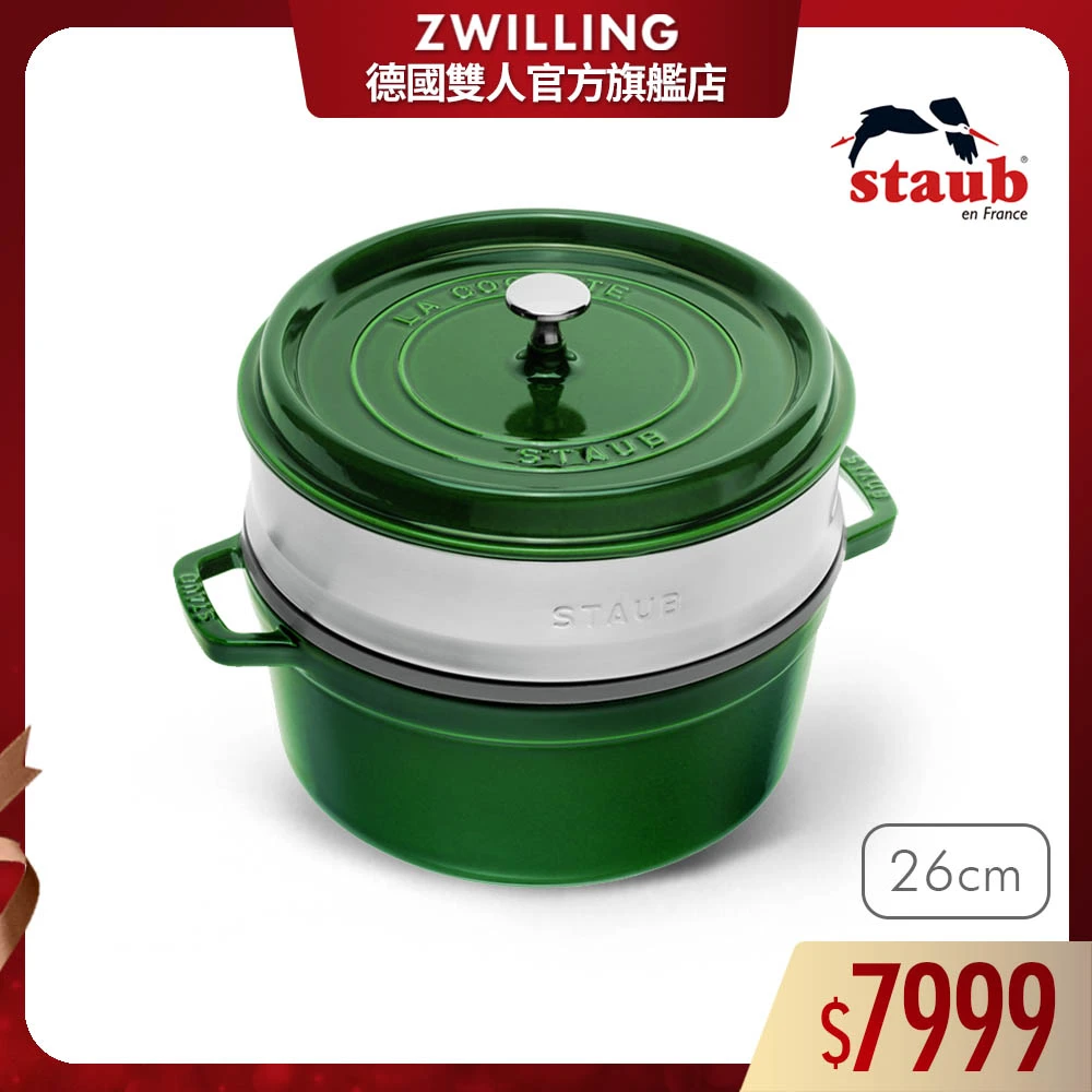 法國Staub 圓形琺瑯鑄鐵鍋蒸鍋26cm-羅勒綠(德國雙人牌集團官方直營)
