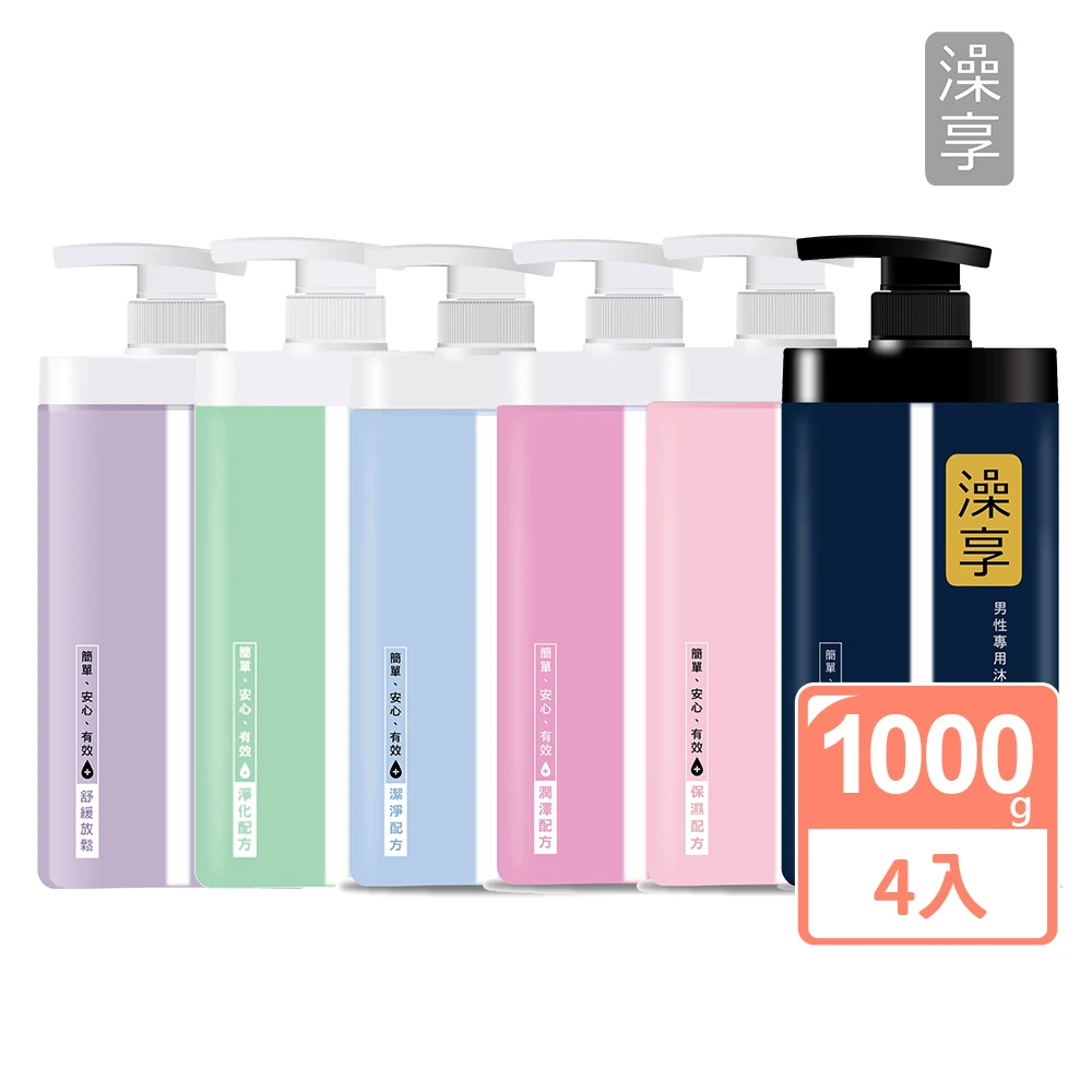 澡享 沐浴乳1000g 4入(白茶/玫瑰風信子/雪松白麝香/牡丹小蒼蘭/甘橙花梨木/紫藤月光花)