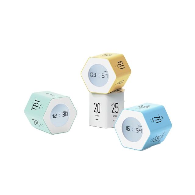 Mooas 韓國六角轉轉專注定時器2件組(番茄鐘、時鐘、商務、運動健身、自律養成、日常烹飪)