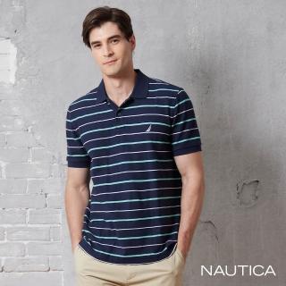 NAUTICA 官方旗艦 男裝 撞色條紋休閒短袖POLO衫(黑色)