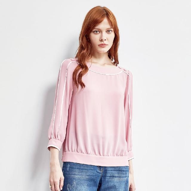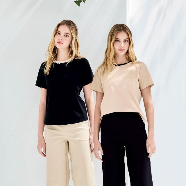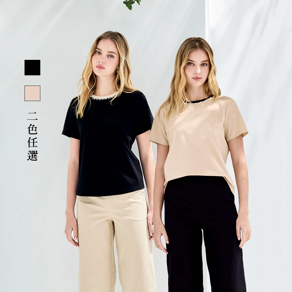 MYSHEROS 蜜雪兒 VITA 網路獨家商品 造型上衣 人棉透氣面料 珍珠裝飾撞色圓領(二色任選)