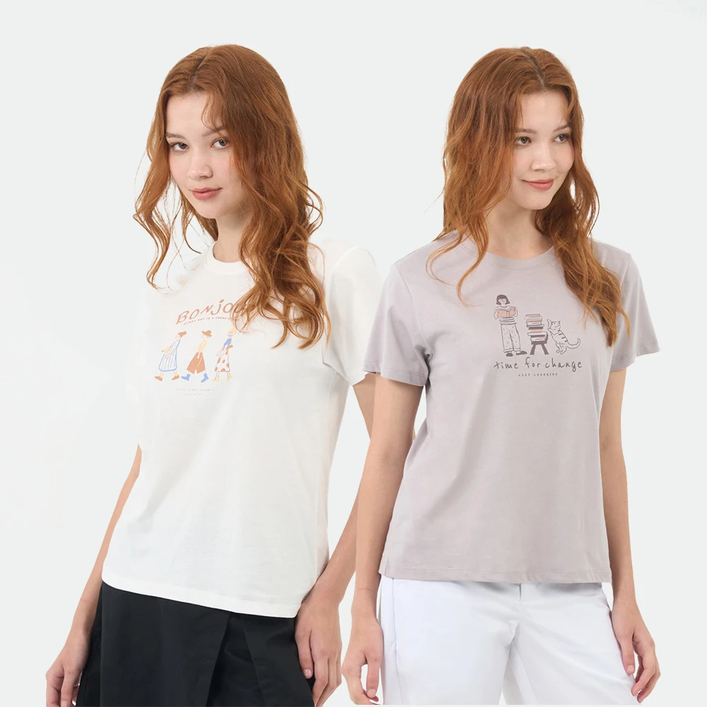 GIORDANO 佐丹奴 女裝 享受生活印花短袖上衣(多色任選)
