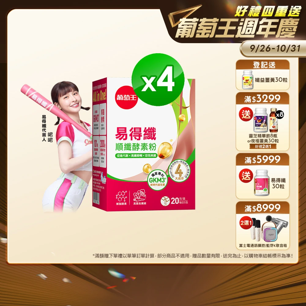 葡萄王 易得纖順纖酵素粉6gx20條x4盒 共80條(峮峮推薦 解脂酵素 101種蔬果精華)