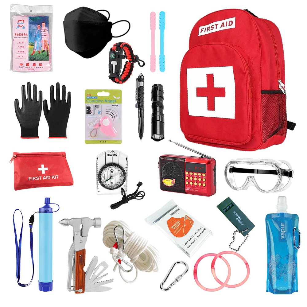 HH 22合1完全款 防災包 地震包 急救包 緊急救難包避難包(戶外淨水過濾器 護目鏡 救生繩 防災收音機)