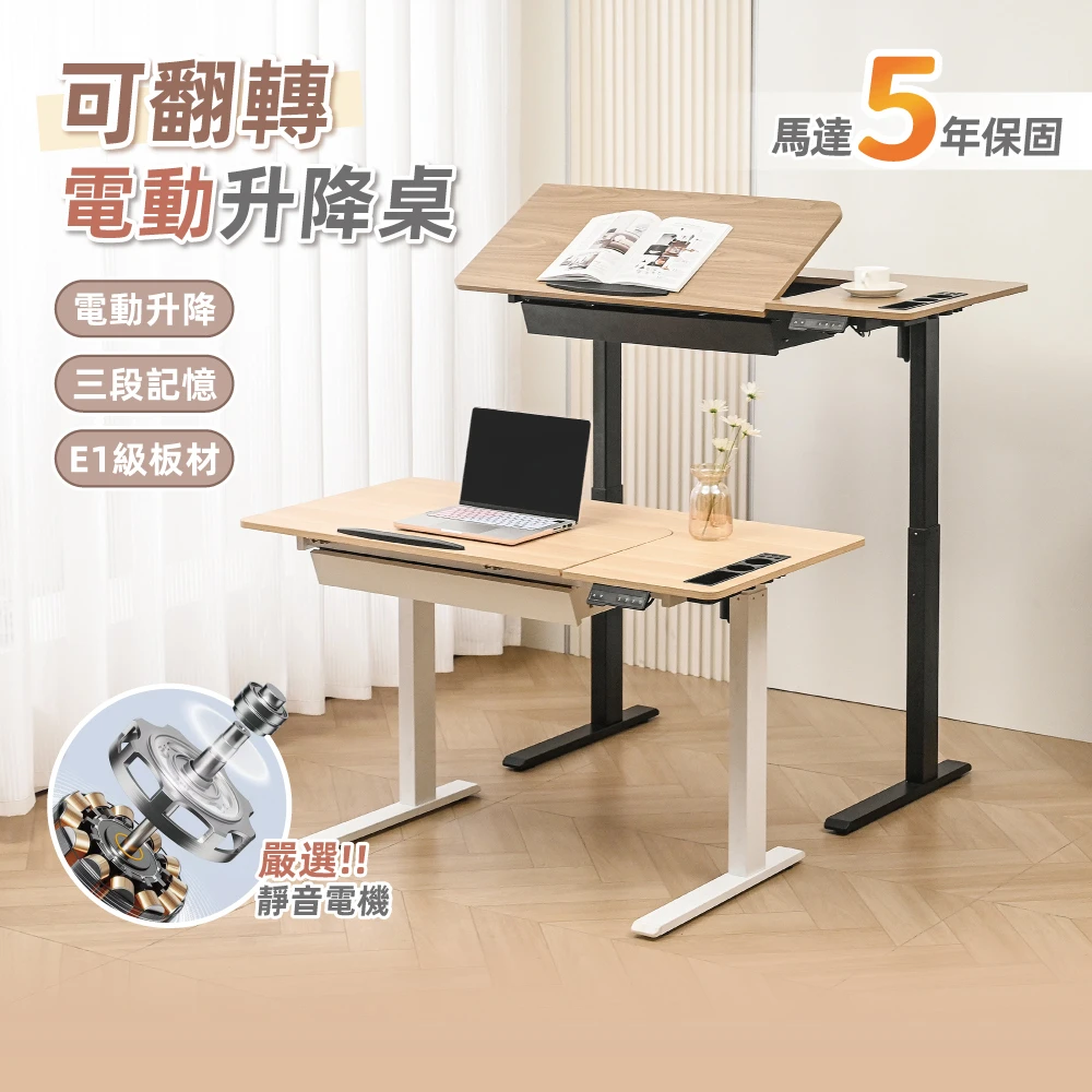 慢慢家居 桌面可翻轉-多功能電動升降桌 120cm(E1級板材 電腦桌 辦公桌 成長桌 工作桌 繪圖桌)