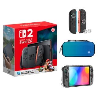 Nintendo 任天堂 Switch 2 瑪利歐賽車世界 主機組+《良值 NS2保護殼+類比套+收納包 藍》+《9H鋼化貼》