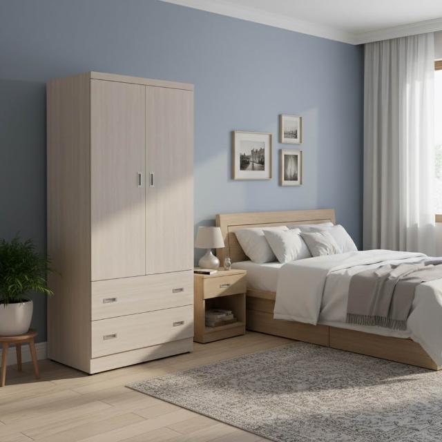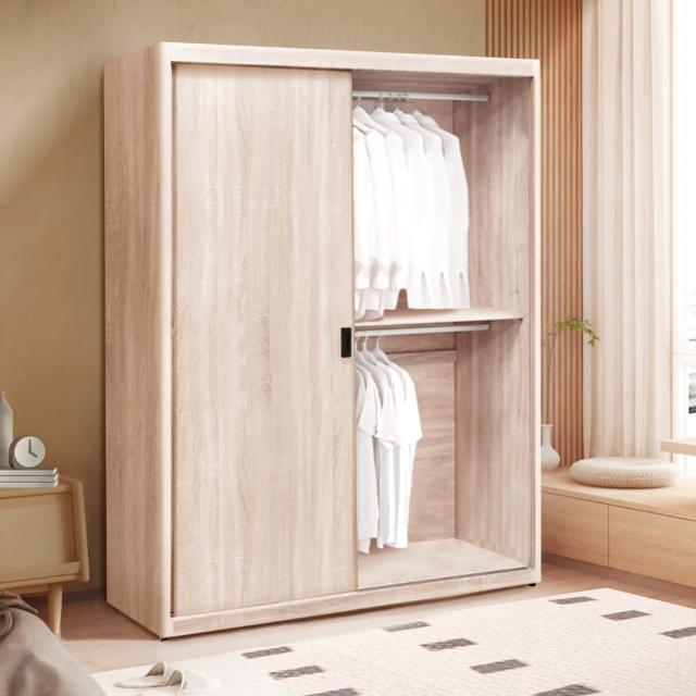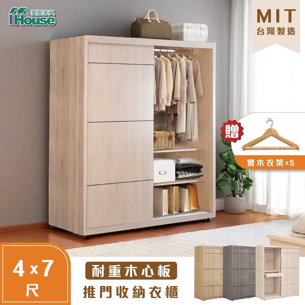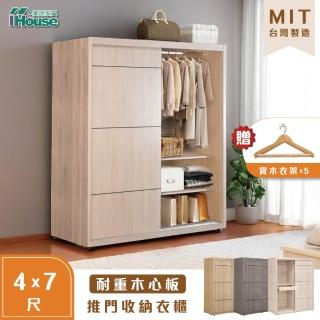IHouse 保羅 免組裝4X7尺台灣製推門收納衣櫃/木心板衣櫥(贈實木衣架*5)