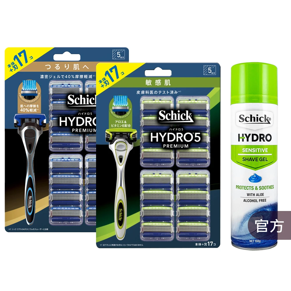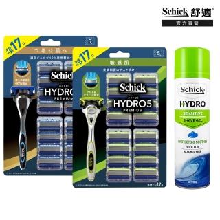 Schick 舒適牌 水次元5 Premium 痘痘敏感肌/保濕款刮鬍組(1刀把17刀片+敏感型刮鬍露198g)