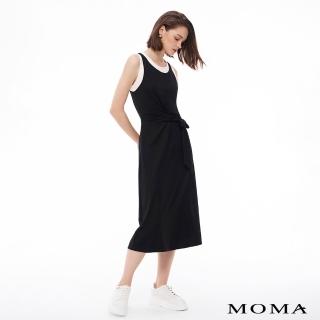 MOMA 親膚彈力假兩件式撞色綁結長洋裝(黑色)