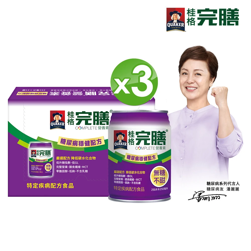 桂格完膳 糖尿病適用 無糖穩健配方250MLx24入x3箱 共72入(守護糖友 積極管理超值組 2025新上市)