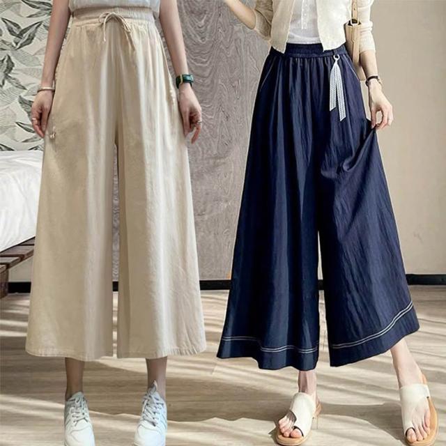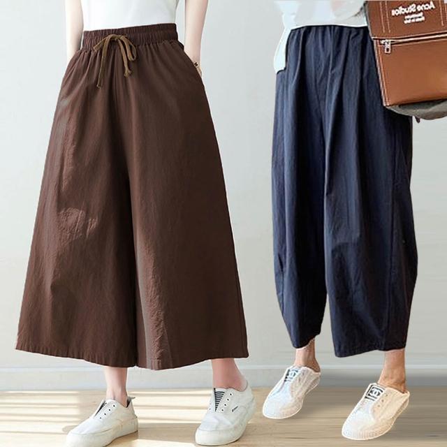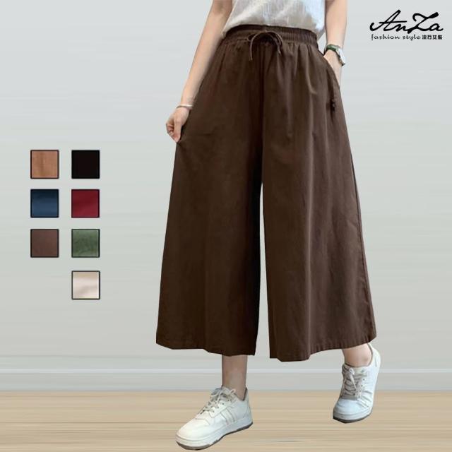 AnZa 早秋換季雪紡棉麻九分褲長裙長褲闊腿褲