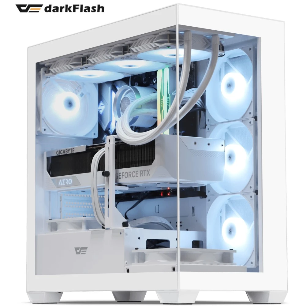 darkFlash 大飛 DS900 ATX電腦機殼-白色(附ARGB風扇*4)