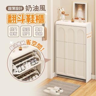 慢慢家居 專人組裝-奶油風三層大容量70cm收納鞋櫃 木質翻斗鞋櫃(按壓開門 法式拱門造型 鞋架)
