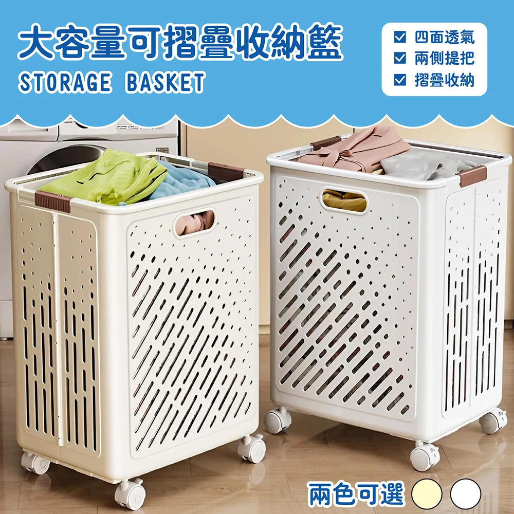 Ashley House 簡物大容量摺疊式附輪洗衣籃 收納筐(收納籃 髒衣籃 摺疊籃)