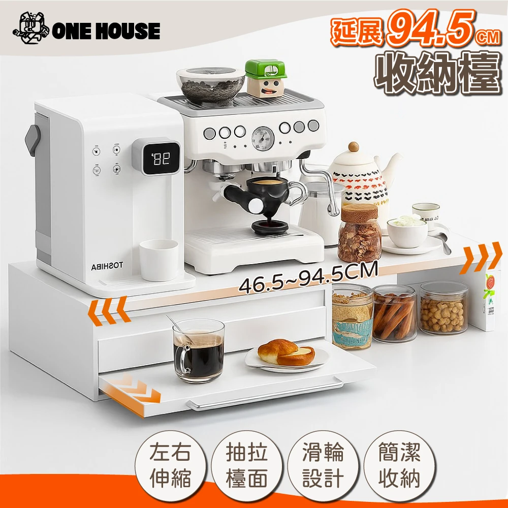 ONE HOUSE 摩卡抽屜式咖啡收納架 -可延伸作業空間 46CM-款式任選(抽屜電器架/咖啡機架/雙層工作台)
