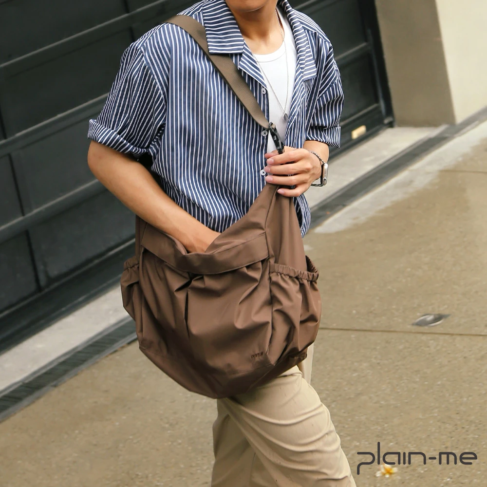 plain-me 男女包 輕量雙口袋斜背包 OPM3012-251(側背包 斜背包 大容量 收納 側背包)