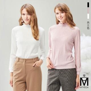 預購 MYVEGA 麥雪爾 MA微光澤立領壓紋百搭上衣-共三色(日系/女上衣/內搭衣/女長袖上衣)