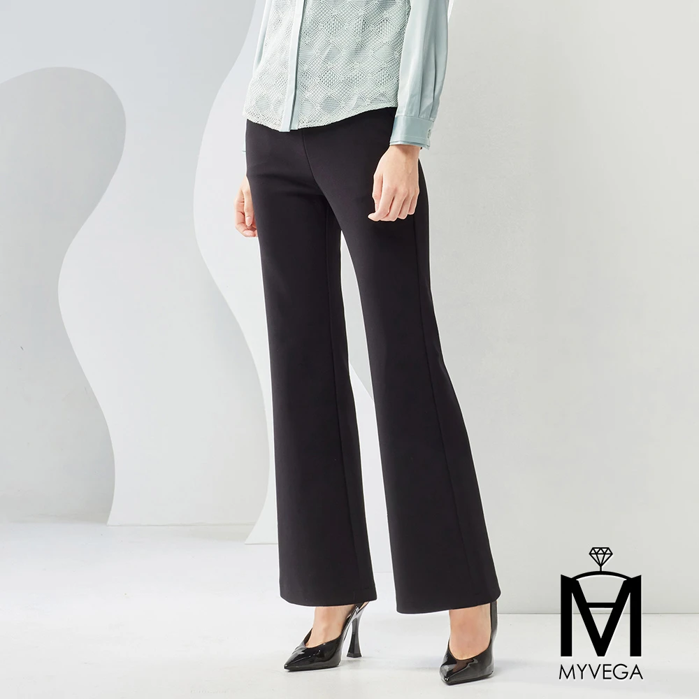 預購 MYVEGA 麥雪爾 MA打摺鬆緊後腰頭九分小喇叭褲-黑(日系/女長褲/女下身/女下著/西裝褲)