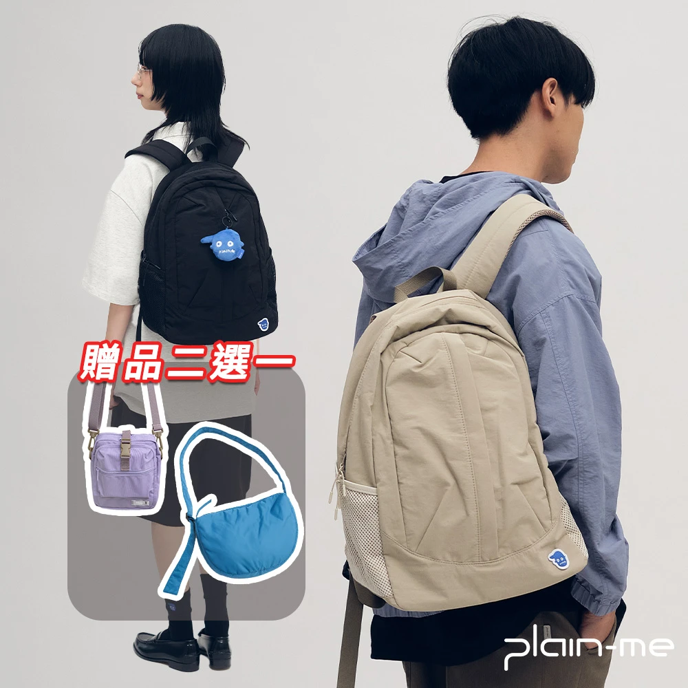 plain-me 買一送一★小P社長拉鍊後背包 大容量旅行包(男女後背包 筆電包 包包 PLN3063-252)